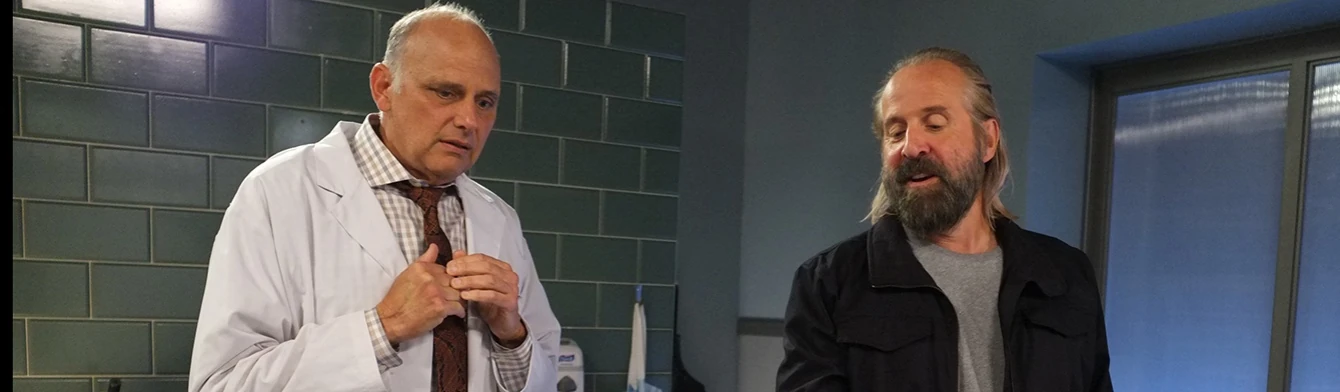 At an unknown location, a man named Cyrus Polk is dragging a dead body. After he thinks someone has spotted him, he panics, drops the body, and takes off. The same body, a John Doe, is seen in the morgue, lying on the table ready for Woody to perform an autopsy. Cyrus enters the morgue dressed as someone from a mortuary. When Woody won't let him take the body, Cyrus pulls a gun on Woody, barricades the morgue, and holds him hostage. Cyrus tells Woody that the man on the table is named Greer Wilson, a person who he found dead on his living room floor stabbed to death with a knife from his kitchen. He tells Woody that he and Greer shared a cellblock in prison and got into a nasty fight while there. Cyrus' last words to Greer were, "The next time I see your ugly face again, I'm going to kill you!" Cyrus says that he was framed for Greer's murder and that if Woody performs the autopsy, he'll be the SBPD's number one suspect. If so, he risks having to go back to jail.